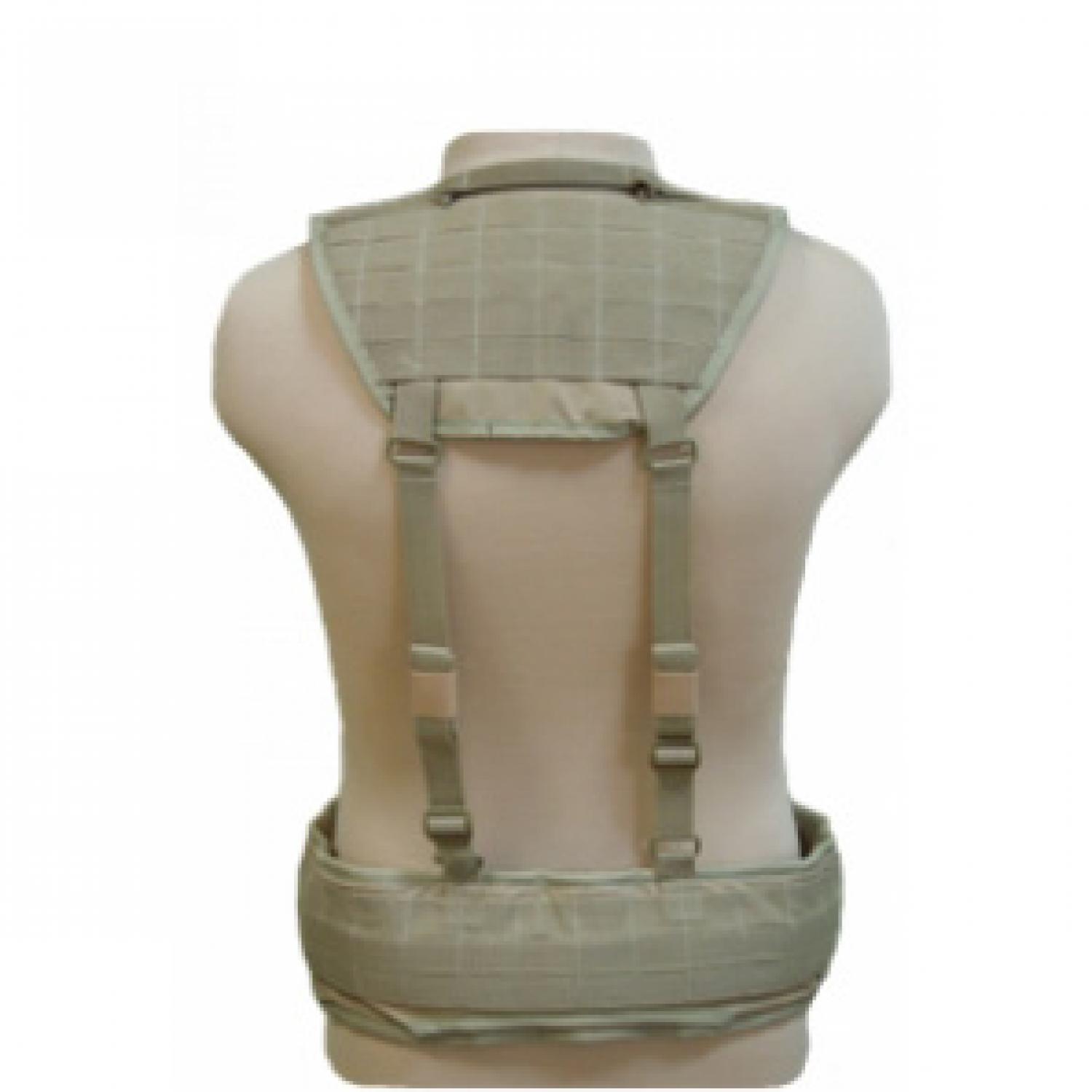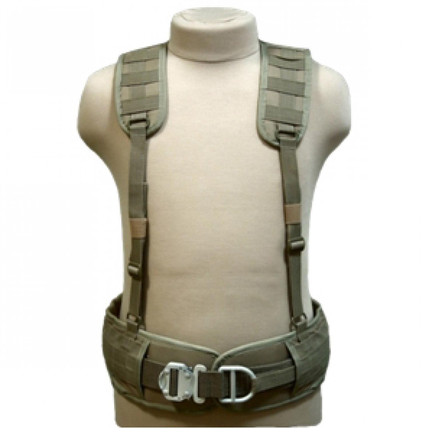 Пояс оборудован системой Molle для размещения подсумков и кобур. Основа оборудована четырмя полукольцами для крепления плечевых лямок, позволяющих распределить нагрузку равномерно.